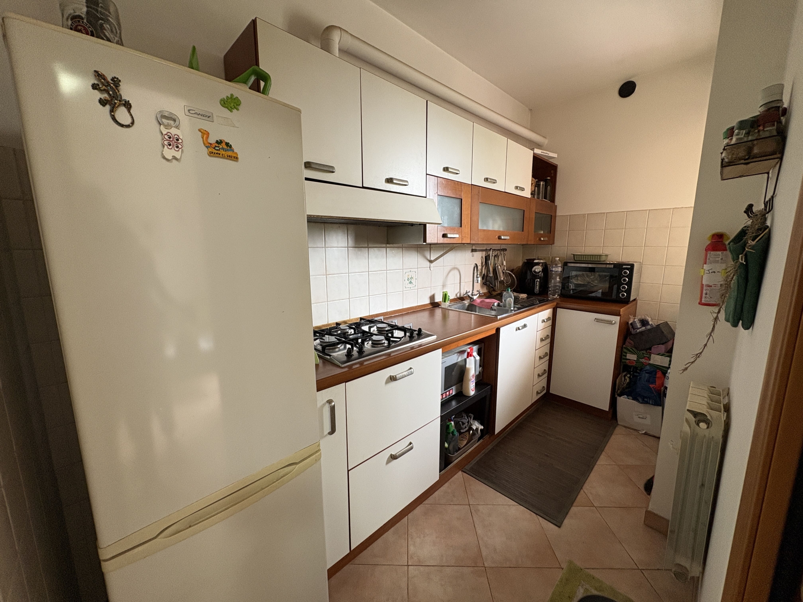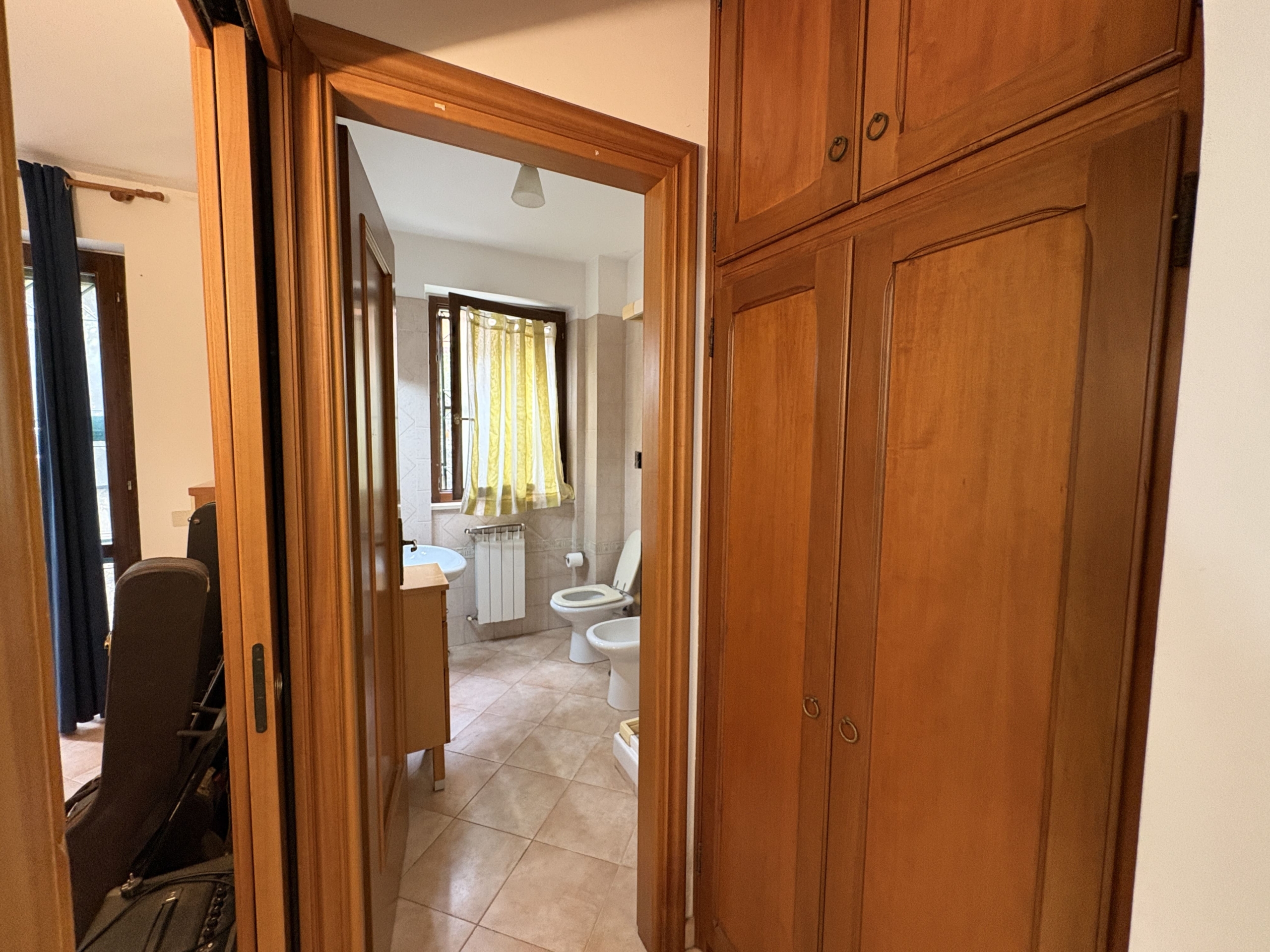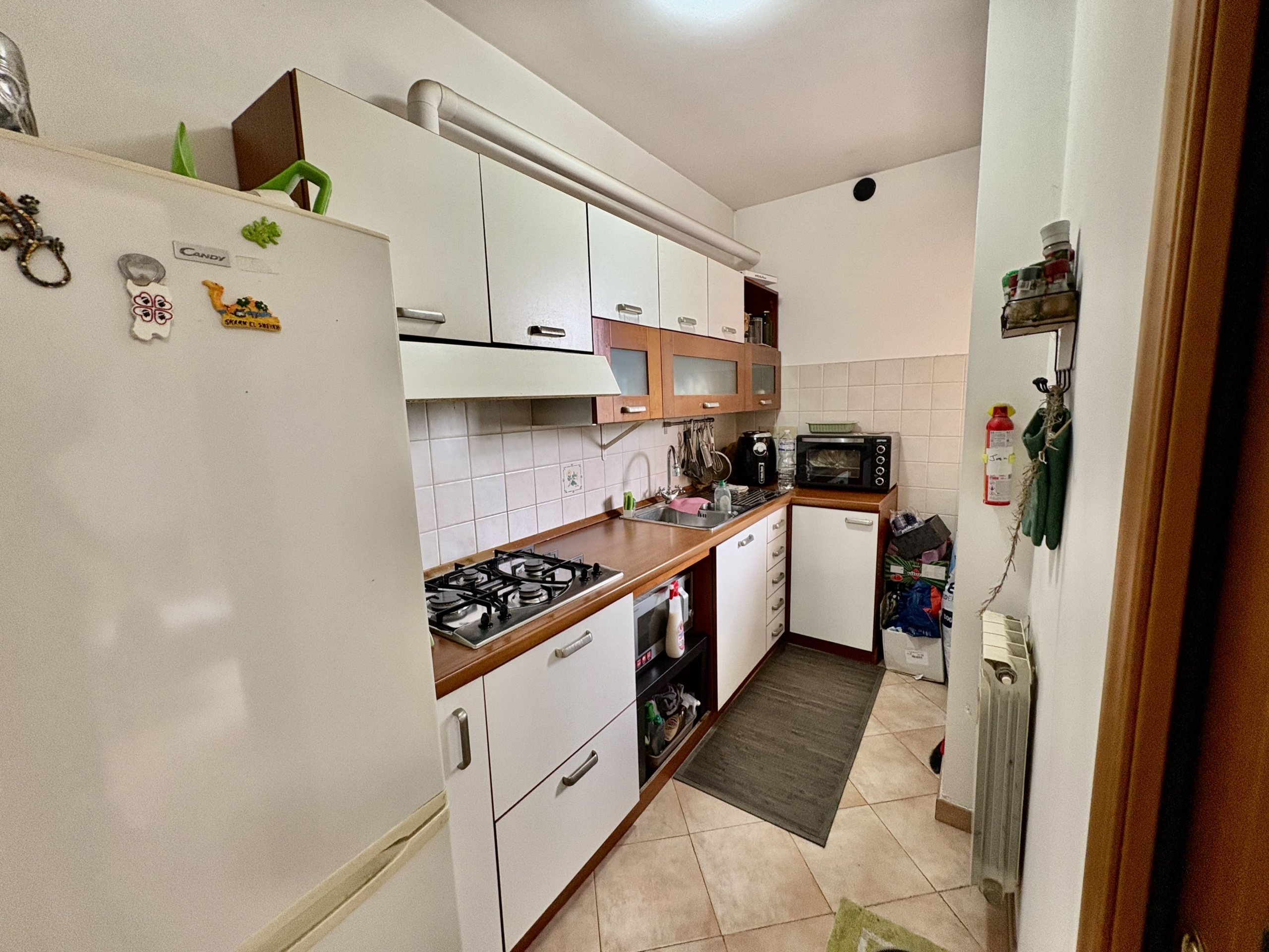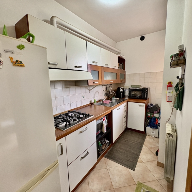 L’appartamento si presenta in buone condizioni ed è caratterizzato da ambienti ben distribuiti e funzionali. L’ingresso si apre su un comodo soggiorno collegato a una cucina separata, con finestra che affaccia sul giardino, che garantisce maggiore praticità e privacy rispetto al classico angolo cottura. Un disimpegno con armadio a muro conduce alla spaziosa camera matrimoniale e al bagno finestrato con doccia.
