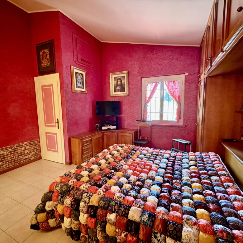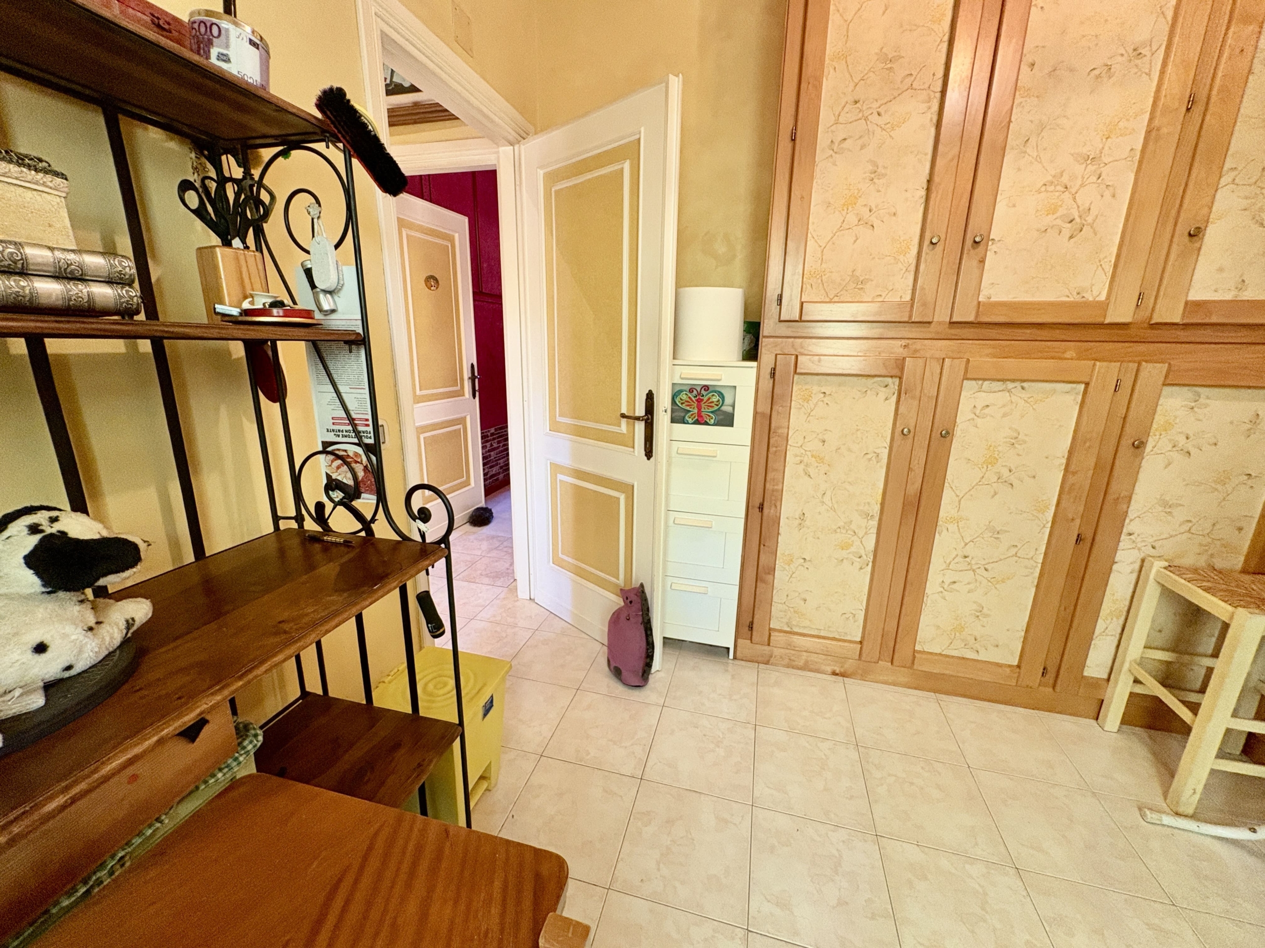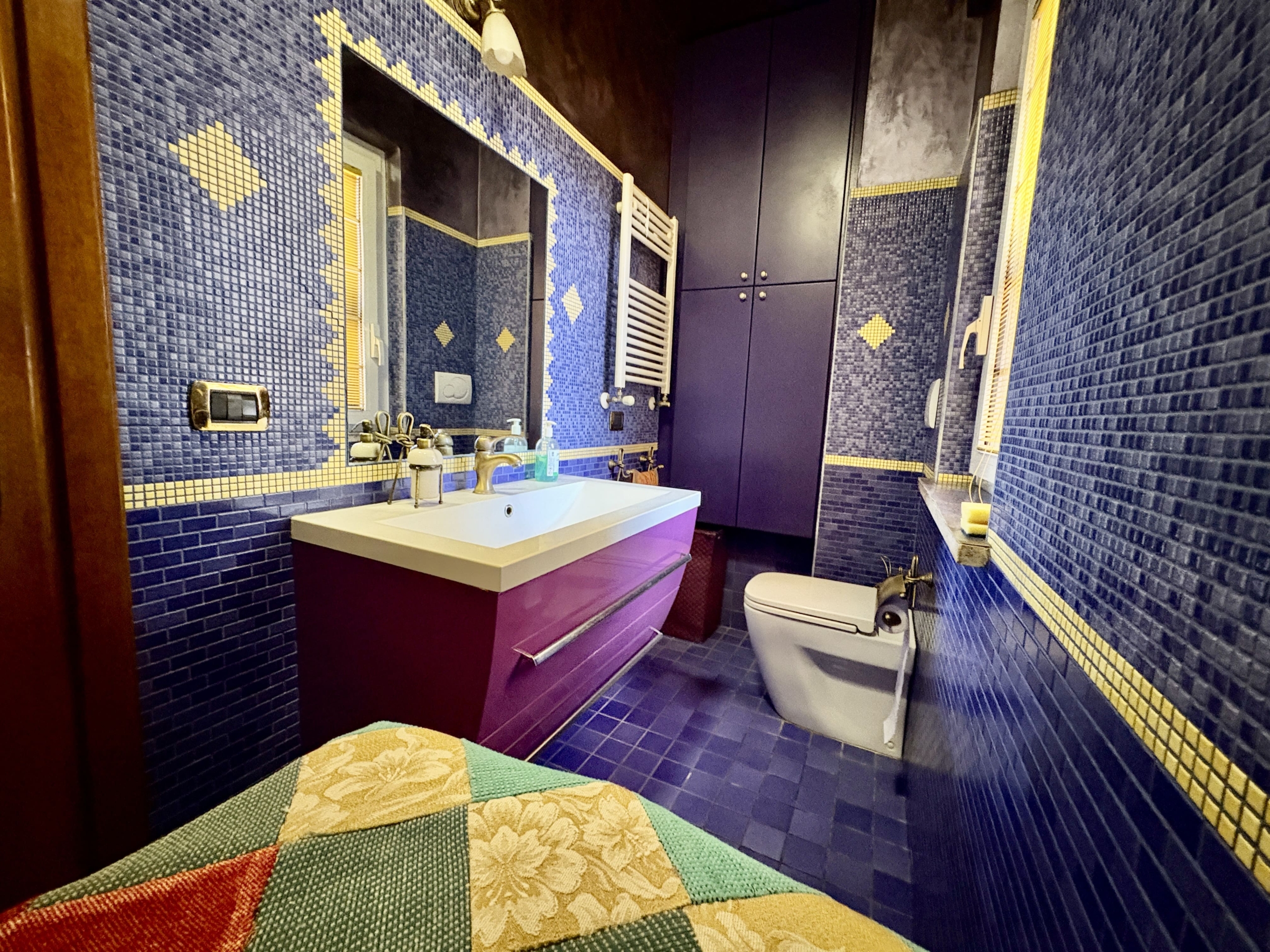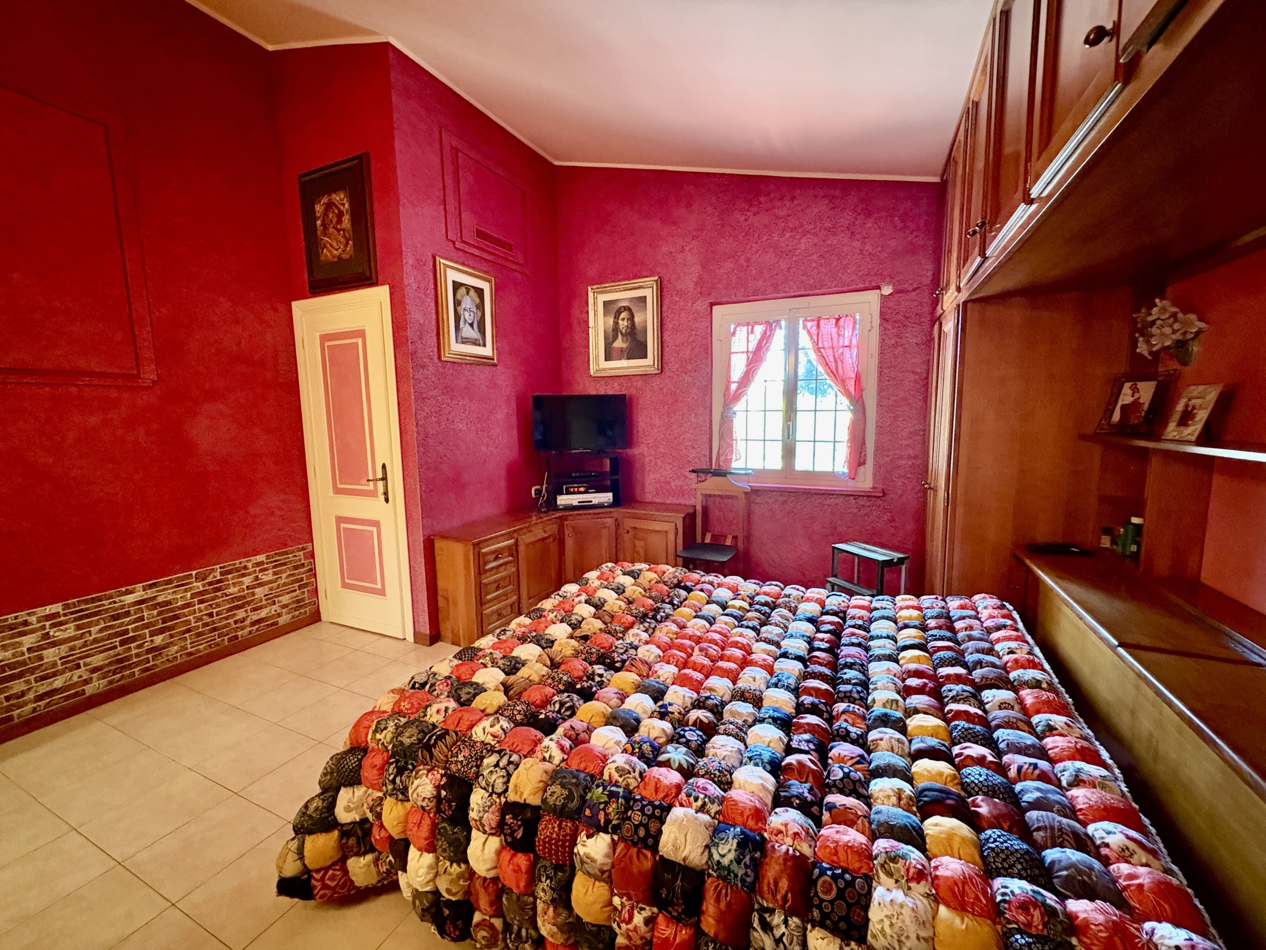 Una scala in marmo conduce al piano superiore, dove un disimpegno con accesso al balcone distribuisce gli ambienti della zona notte: una camera matrimoniale con bagno privato completo, una cameretta ideale come cabina armadio o lavanderia, due ulteriori camere matrimoniali e un secondo bagno completo.