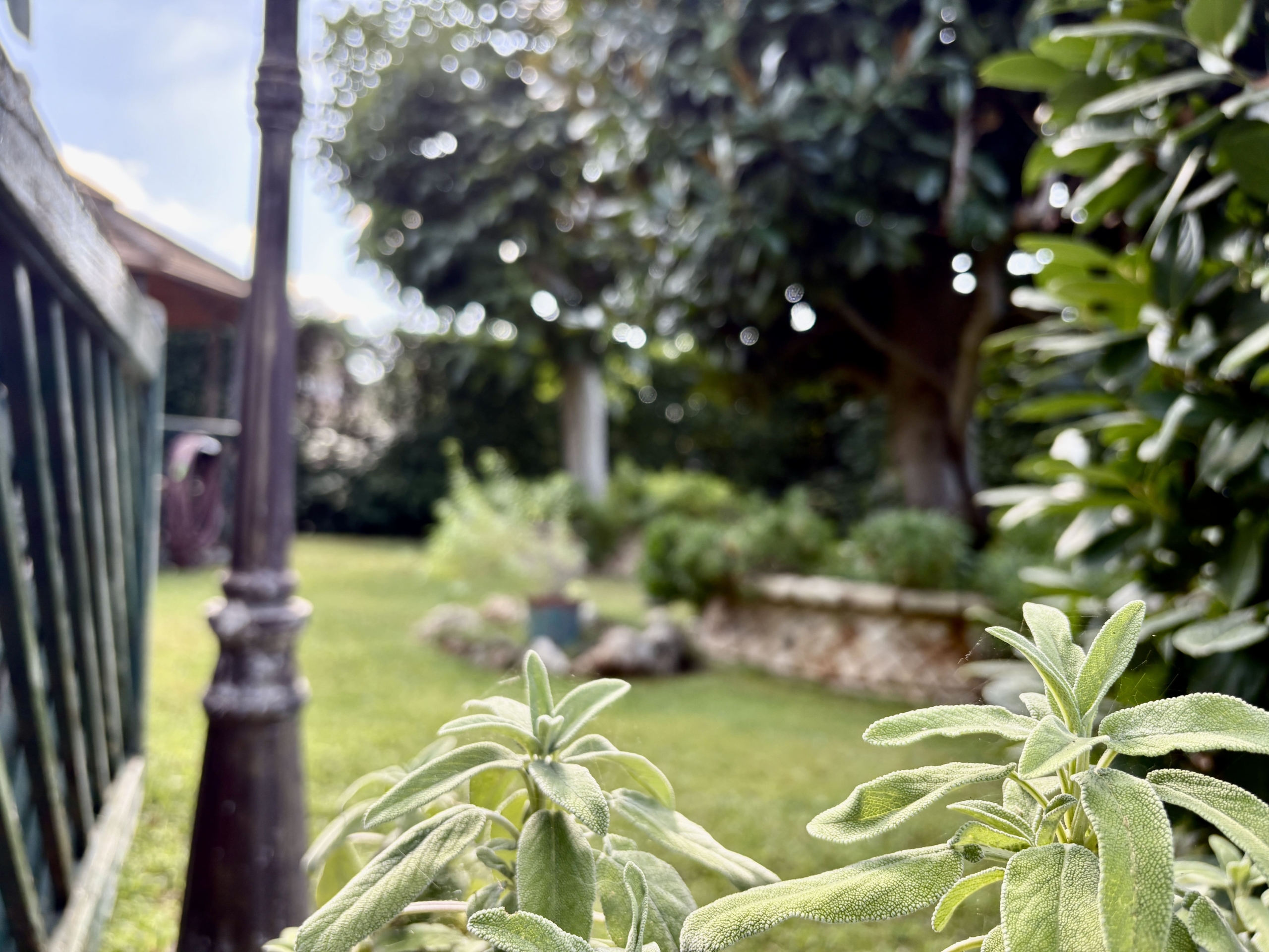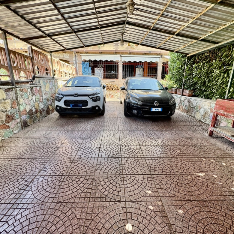 L’accesso, da cancello elettrico sia carrabile che pedonale, conduce a due posti auto interni e introduce a un ampio giardino angolare, in parte pavimentato e in parte a verde, ideale per vivere gli spazi esterni in ogni stagione. Dal giardino si accede a una veranda chiusa con grate, che funge da piacevole zona filtro prima di entrare in casa.